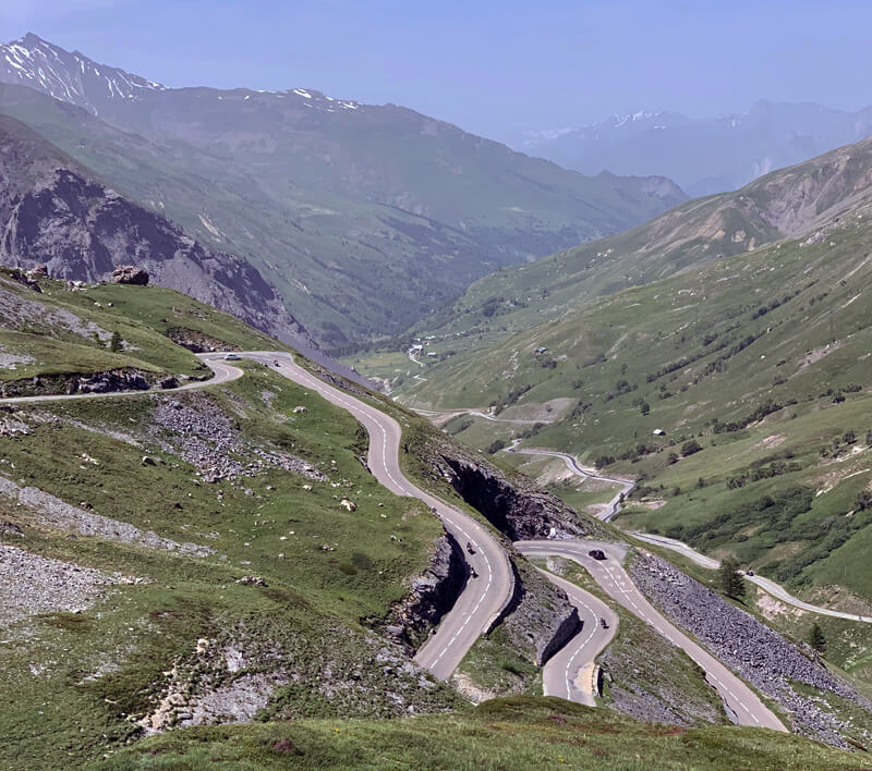 The col du Croix de fer, Telegraph, and the Galibier. Three big climbs that make up the "Marmote" loop, ending with the Galibier. Here the view down the north side of the Galibier, still 5km from the top. Epic and hard, just like we like it.