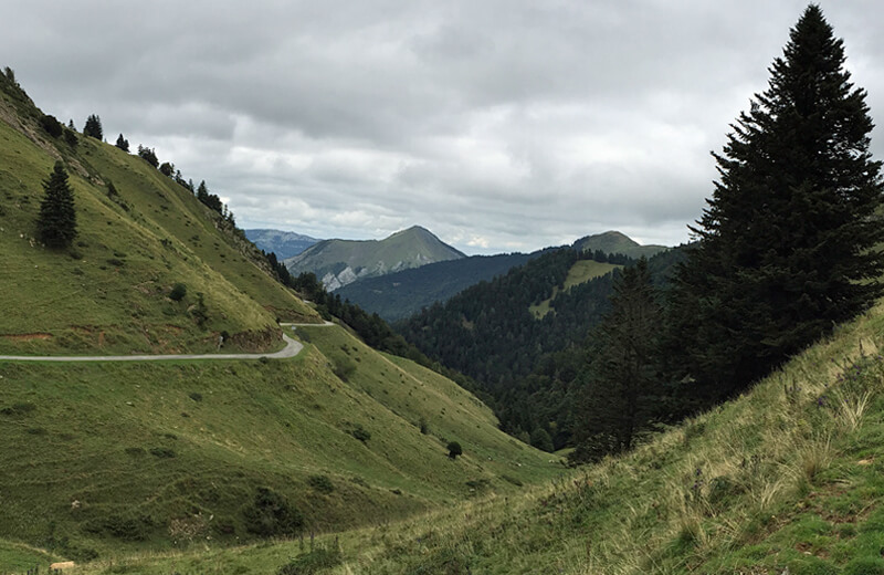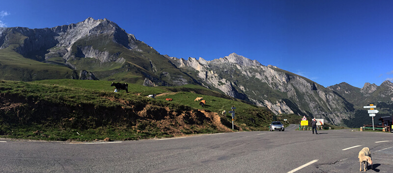So many great memories that I couldn’t get my head around them all at the end of each day – overwhelming! Flashbacks after coming home: fountains in the quaint villages, livestock in the open pastures at elevation (including sheep herds spanning the road), the sound of cowbells out across the corniche traversing from the Soulor to the Aubisque , always mountains up ahead to cross. In the foothills there was even a river flowing through a natural tunnel in a limestone ridge – bizarre!