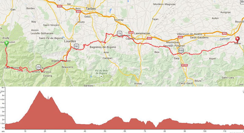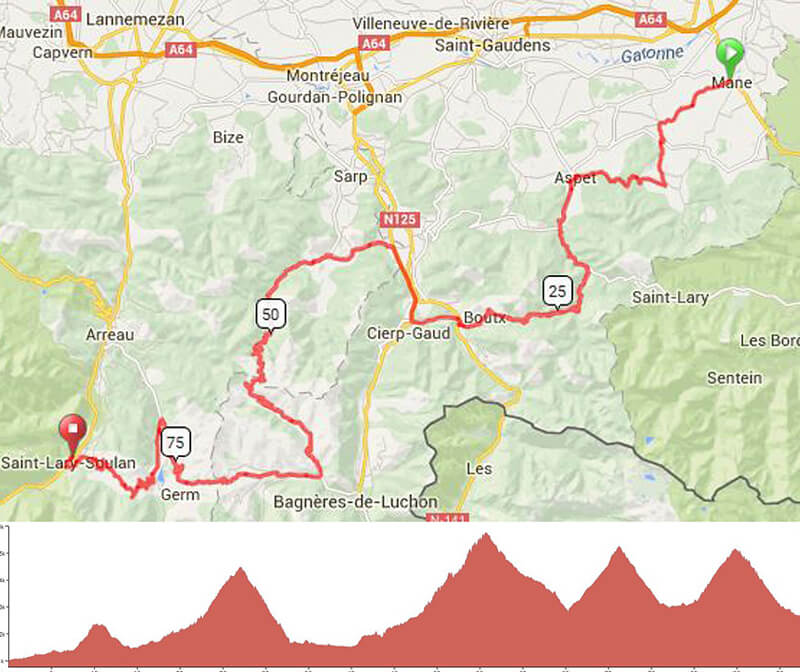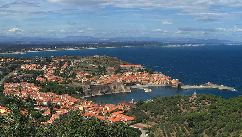 The original plan was to go from Biarritz, in the Bay of Biscay in the Atlantic Ocean to Perpignan in the marvelous Mediterranean Sea. The distance is about 900 kilometers and the journey goes through the Pyrenees and the famous mountain ports of the Tour de France.